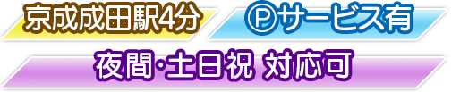 当法人は、京成成田駅から徒歩4分の場所に事務所があります。