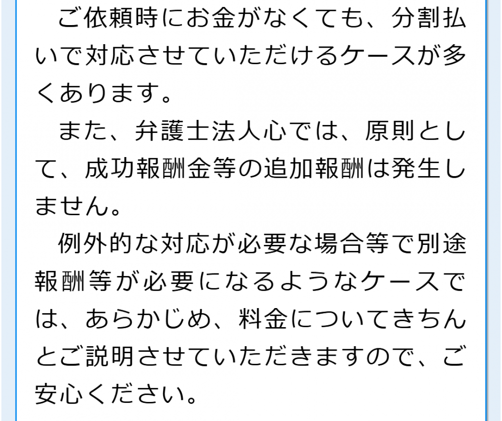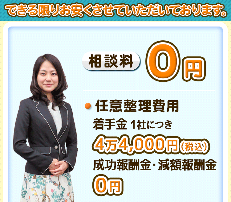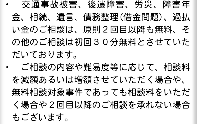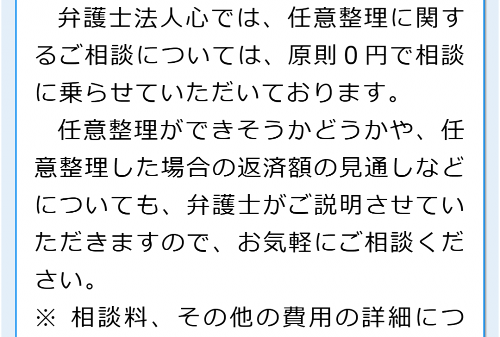 当法人では相談料無料で借金のご相談をお受けしておりますので、借金の返済にお困りの場合には、お気軽にご相談ください(例外等ありますので、当サイト内の費用ページで詳細をご確認ください)。