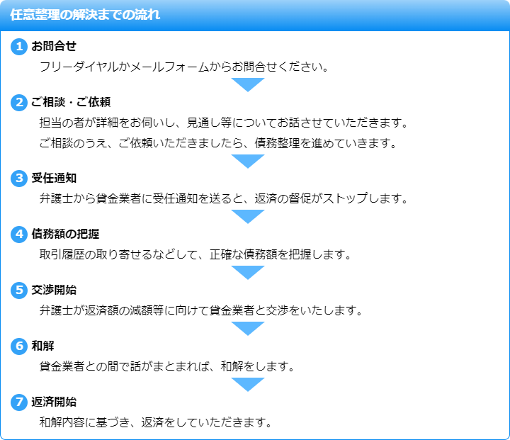 任意整理とは、債権者との交渉により、返済条件を緩和する手続きです。