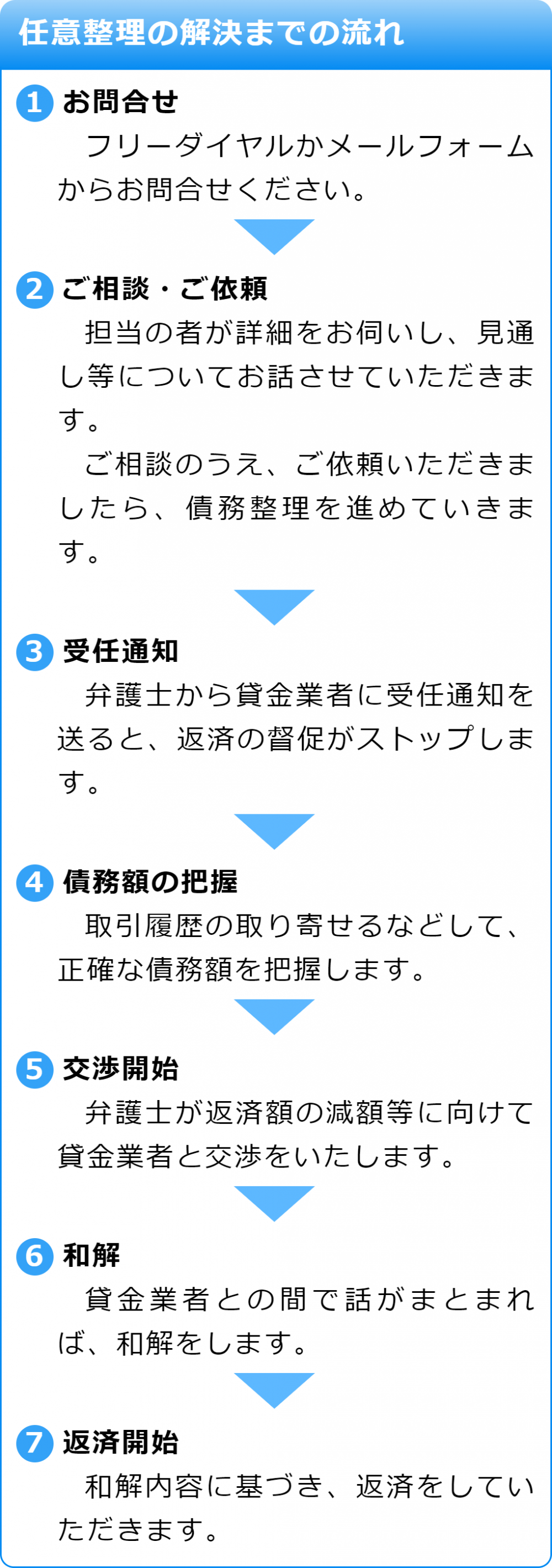 任意整理について何かご不安があって迷っている場合には、ご質問もしていただけますので、まずは一度ご相談ください。